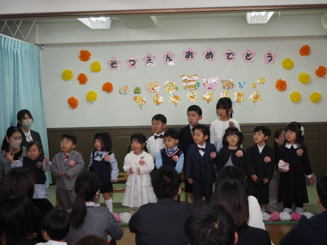 2026.03.21 園だより 卒園式 この日は卒園式でした!いつもと違う雰囲気や服装にドキドキした様子の子どもたちです。式が始まりお名前を呼ばれると、「はい!」と大きな声で返事をしてくれました。沢山の人の前でも堂々としている姿に、成長を感じました。卒園おめでとう! PDFを開く 一覧に戻る